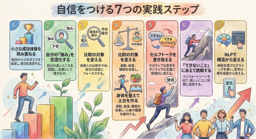 いきなり大きな挑戦は不要です。いつも同じメニューを注文する人が違うものを頼んでみる。普段は発言しない会議で一つだけ質問してみる。重要なのは結果ではなく、「挑戦した自分」を認めること。その姿勢が、持続的な自信を育てます。