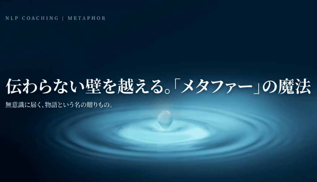 問題は、説明の正確さではないかもしれません。人の心が動くのは、論理が通ったときではなく、「自分の体験として感じられた」とき。直接的な説明では届かないメッセージを、物語やたとえ話に包んで届ける。NLPでは、この技術をメタファーと呼びます。